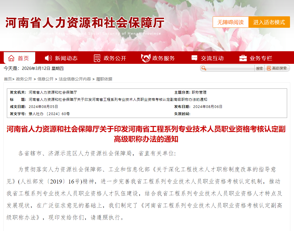 原文链接:河南省人力资源和社会保障厅关于印发河南省工程系列专业技术人员职业资格考核认定副高级职称办法的通知_履职依据_河南省人力资源和社会保障厅 (henan.gov.cn)